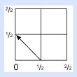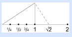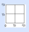 Regresemos a nuestro primer cuadrado, con sus dos pequeños cuadrados en el "punto cero" y con nuestra diagonal que va del punto 1/2 en la parte inferior al punto 1/2 del lado izquierdo.