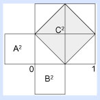 Si observamos los lados que forman y rodean al triángulo, podemos llamar a a los lados del primer cuadrado pequeño, b a los del segundo cuadrado, y c a los del cuadrado más grande. Entonces, sin olvidarnos de que el lado de un cuadrado es meramente el límite del área que encierra el cuadrado, y que esa área la construimos arrastrando el lado hasta cubrir la superficie necesaria, escribimos esa operación como a².