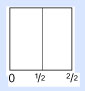 Cuando cortamos verticalmente el cuadrado a la mitad, obtenemos una de nuestras fracciones, es decir, el primer 1/2. Luego, cortamos el mismo cuadrado a la mitad de forma horizontal para conseguir la segunda fracción. Ahora, marca la base y el lado izquierdo del cuadrado 0, 1/2, 2/2, como se muestra.