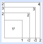 Nosotros podemos aclarar esto: ¡las líneas no tienen raíces cuadradas! No obstante, después de construir el cuadrado, vemos que el área del cuadrado determina la línea, a la que también se conoce como la raíz cuadrada. Sin embargo, la línea sólo es un lado del cuadrado. Si el niño, o el padre o el maestro, a este respecto, omite de la investigación de los números y las matemáticas la distinción entre el área y la línea, ambos marcados como 1/4, las matemáticas pierden sentido. Veamos de nuevo el primer cuadrado vacío. ¿Puedes ver dónde están las raíces cuadradas? ¡Ellas también te miran, riéndose, por que las atrapaste!