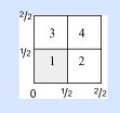 Colorea el pequeño cuadrado que cubriste con tus dedos, dentro de los límites de 1/2 por 1/2. Ahora numera los cuadrados.