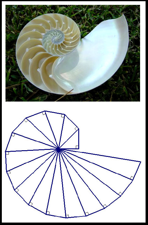 (lado menor 1, lado mayor K) sugiere la forma de una espiral logarítmica