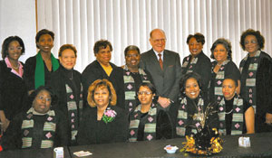 Lyndon LaRouche junto al grupo de la hermandad femenina Alpha Kappa Alpha.