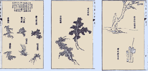 Finalmente, dos aspectos extraños para la tradición pictórica occidental: la estilización de detalles específicos y el uso de sellos. Durante siglos, los pintores chinos elaboraron manuales sobre la correcta forma de pintar diferentes elementos, tales como el bambú, follajes, ramas, o el ciruelo en flor, etc. Se elaboraron numerosos libros impresos en bloques de madera.