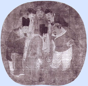 En otro pergamino, pintado 600 años después por Ren Fa de la Dinastía Yuan, “Zhang Guo se entrevista con el Emperador Minghuang” todas las figuras están muy activas, como una escena “en vivo”.