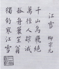 “El pescador en un día nevado” es una pintura de un poema del poeta Liu Zong-yuan(773-819 D.C.) en la Dinastía Tang, lo que traducido al español dice: Río nevado En lo alto de mil cumbres elevadas Miren la pintura ahora. Observen cómo cambió la forma en que lo ven ahora por los pensamientos generados debido a la conciencia del poema.(*7) Pintando “ideas poéticas” ó Shi i Durante el periodo Song del Norte, la combinación de la poesía y la pintura era tan apreciada, que se introdujo un examen de poesía en la Academia de Pintores (*8). Los pintores traían un poema, o algunos versos, y trabajaban la idea poética en sus obras. Muchos de estos exámenes, así como sus resultados, han llegado hasta nuestros días. He aquí un ejemplo: Regreso a casa entre flores, ¿Cómo pintarías eso? Elegir un viejo poema como el tema de la composición, se le conoce como pintar “ideas poéticas”, Shi i, y un buen ejemplo es “paseo nocturno con lámparas” pintado durante la Dinastía Song por Ma Lin, quien vivió hacia la mitad del siglo XIII D.C.(*9)