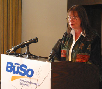 "La misión de Europa: crear un futuro para seis mil millones de personas". Ese fue el foco del congreso del partido Bürgerrechtsbewegung Solidarität (BüSo, Movimiento de Derechos Civiles Solidaridad) de Alemania, que tuvo lugar en Berlín el 26 de enero. El congreso escogió una lista de 86 candidatos, encabezada por Helga ZeppLaRouche, presidenta del partido, para participar en las elecciones al Parlamento Europeo que tendrán lugar el próximo 13 de junio. Los que siguen a la señora ZeppLaRouche en la lista, de la que una tercera parte son menores de 25 años de edad, son los jóvenes Alexander Pusch, Christoph Mohs y Thomas Rottmair. A la juventud alemana le atrae el BüSo no sólo por la soluciones programáticas que ofrece a la crisis económica mundial, sino especialmente por el entusiasmo con el que sus miembros encaran la tarea de cumplir con esos proyectos inconclusos de la Europa humanista, fundamentados en el respeto a los derechos humanos, la búsqueda de la felicidad y el bienestar general, cosas que Leibniz, Mendelssohn, Schiller y Humboldt trataron de llevar a la práctica hace dos siglos, junto con sus amigos en Francia, Polonia, Dinamarca y las otras naciones europeas. Ellos fueron inspirados por sus amigos americanos, quienes fundaron la primera república libre y soberana en la historia con la Revolución Americana. De allí que la otra consigna electoral del BüSo es "Completemos la Revolución Americana en Europa". El BüSo no es un partido pragmático propenso a la realpolitik; más bien ve al pragmatismo como una amenaza mortal, dada la crisis económica mundial extraordinaria que ahora encaran Europa y el mundo. De allí que mantiene un apego a los grandes poetas y pensadores del pasado. En su discurso de fondo, Helga ZeppLaRouche se valió de Federico Schiller para demostrar esto. "Nos encontramos en una encrucijada histórica, y a uno involuntariamente le viene a la mente el prólogo de Wallenstein, que dice: `Se abordan las grandes cuestiones de la humanidad: la guerra y la paz' ". ZeppLaRouche recalcó la urgencia de establecer la "solidaridad" en su verdadero sentido cristiano, para contrastar la presente situación con lo que describió como "puro darwinismo social", una expresión lógica del "neoliberalismo fracasado". ZeppLaRouche hizo hincapié en el derrumbe del sistema financiero mundial que asoma, y dejó en claro las alternativas que encaran Europa y el mundo: el caos y el fascimo, o una reorganización del sistema monetario mundial (un Nuevo Bretton Woods) que pueda asegurar el derecho al desarrollo de todos los pueblos y naciones. La señora ZeppLaRouche demostró que el fascismo no es una amenaza inventada, y describió el fenómeno del "sinarquismo", la madre común del fascismo, el comunismo y otras formas de gobierno totalitario surgidas en los últimos 200 años. "Los sinarquistas siempre vienen con disfraces diferentes. Hoy no aparecerán como nazis, sino a veces tal vez como juristas, o tal vez administradores", advirtió. Apuntó al papel cada vez más dominante de los llamados "asesores", y de los centros de estudios privados que cada vez ejercen mayor influencia en la toma de decisiones. Hay círculos derechistas e izquierdistas que están lanzando un ataque frontal contra la Ley Básica de Alemania, y uno de sus padres espirituales es el mismo Arnulf Baring que escribió un artículo que apareció en el Frankfurter Allgemeine Zeitung en noviembre de 2002, titulado "Ciudadanos, a las barricadas", en el que se lamentaba de que la Ley Básica no tiene un Artículo 48 como la Constitución de Weimar, que le permitía al gobierno gobernar por Notverordnung (decreto de emergencia). Lo que motivó la diatriba increíble del profesor Baring en ese momento fue la oposición del canciller Helmut Schröder a la guerra de Iraq, misma que Baring calificó de metida de pata. Un conflicto en la historia intelectual europeaSin situarlas en la historia intelectual de Europa, uno no podrá entender el peligro que representan para las actuales constituciones europeas las declaraciones de Baring y las campañas de los sinarquistas. De allí que la señora ZeppLaRouche habló en detalle sobre las tradiciones políticas y filosóficas de pensamiento totalmente encontradas que han definido la historia intelectual de Europa, empezando con el ensayo de Schiller, "Solón y Licurgo". Por una parte, el historiador Schiller describe la constitución espartana como un modelo oligarca de sociedad, en la que una élite minúscula trata a la población como ganado humano. En la antigua Roma a esto se le llamaba "pan y circo". ¿Cuál es la situación en la actualidad? La señora ZeppLaRouche hizo el contraste entre la negación de la capacidad de razonar del hombre, y la descripción que hace Schiller de la constitución de Solón de Atenas. La meta de la raza humana es el progreso. Así lo pensaban Platón, san Agustín y Nicolás de Cusa, y sus ideas a la larga condujeron a la formación de los Estados soberanos. Esta idea platónicaagustiniana, de que el hombre es intrínsecamente capaz de desarrollar sus capacidades cognoscitivas y de descubrir las leyes de desarrollo del universo, tomó arraigo en la tradición intelectual humanista europea. En este sentido, ZeppLaRouche elogió el genial Tratado de Westfalia de 1648, que decía: "Toda política exterior debe fundamentarse en el principio del amor, y debe tener como norte el beneficio del prójimo. Este es el principio del derecho internacional moderno, y es el aporte singular de Europa a la historia política de las ideas". Pese a que las ideas de la Revolución Americana provinieron de Europa, no pudo establecerse una constitución en Europa que siguiera los lineamientos de la estadounidense debido al contraataque del Imperio Británico representado por lord Shelburne. ZeppLaRouche describió de forma sumaria la historia constitucional de Alemania. Luego de las guerras napoleónicas, Guillermo de Humboldt y 