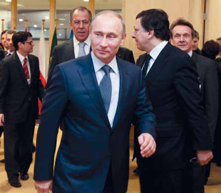 British imperial interests are intent on destroying Prime Minister Putin’s bid for the Presidency, and throwing Russia into deadly political turmoil. Shown: Putin on a visit to the EU in Brussels, Feburary 2011. |