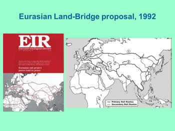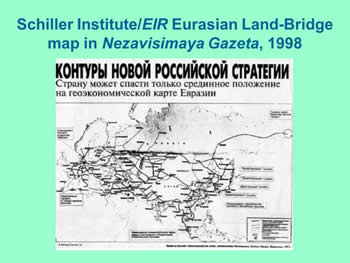 In 1996, Helga Zepp-LaRouche spoke at the 1996 “Continental Bridge” conference in China. Our Land-Bridge map appeared in the Russian press.