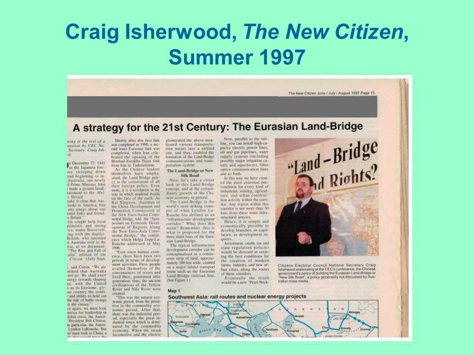 I and my organisation mobilised support in Australia for the Land-Bridge concept, as shown in this 1997 issue of our newspaper.
