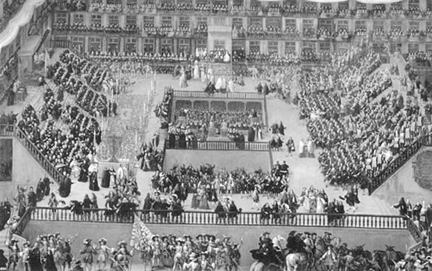 (15) La actividad de la Inquisición no siempre fue tan intensa. La última gran demostración ceremonial de su poder fue el inmenso “auto de fe” en la Plaza Mayor de Madrid en 1680. El rey Carlos II, para celebrar su boda, personalmente encendió las hogueras de veintisiete “judaizantes” (“conversos”, de los que se sospechaba practicaban el judaísmo en secreto). José Bonaparte la abolió, durante la invasión francesa en 1808, y fue restablecida por Fernando VII y finalmente abolida en 1834.