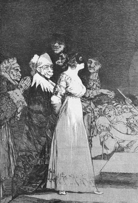 Con el que Goya empieza los Caprichos (plancha 2, Fig. 33) y será tratado en prosa por Moratín en su obra maestra, “El sí de las niñas” en 1806, que fue prohibida por la Inquisición.
