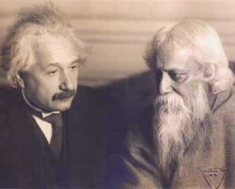 Rabindranath Tagore (derecha), el amado poeta indio, quien también es amado por el pueblo chino, en su famoso diálogo con Einstein: “Cuando nuestro universo está en armonía con el hombre, lo eterno, lo conocemos como verdad, lo sentimos como belleza”. |