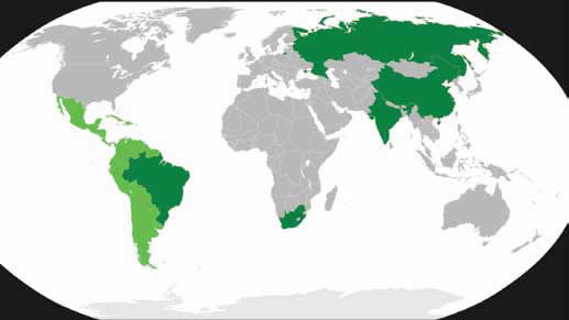 | Gráfica 3 Las naciones del BRICS: Brasil, Rusia, India, China, Sudáfrica ![]() |