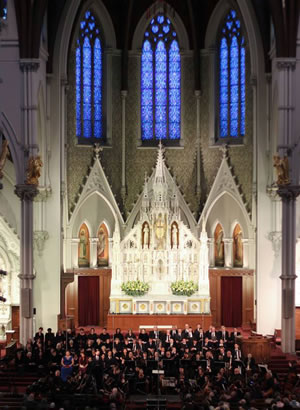 John Sigerson, director del Coro del Instituto Schiller.El embajador Flynn, a nombre del cardenal O'Malley, le dio la bienvenida al público en la Catedral de la Santa Cruz, y le dio las gracias al coro y a la orquesta por conmemorar el histórico evento de 1964, recordando que el personalmente estuvo presente como parte del público ese día hace 50 años. Flynn dijo: "Nos sentimos tan honrados de que todos ustedes, y en particular este grupo de músicos puedan estar aquí con nosotros en este día histórico. En esta catedral se han llevado a cabo muchos eventos increíbles, mencionemos la visita que nos hizo John F. Kennedy, y el servicio funeral de John F. Kennedy en 1964. Fue aquí... Y yo se que hablo por todos los ciudadanos de Boston cuando les doy la bienvenida, gracias por estar aquí, y gracias por compartir su talento en este día histórico que significa tanto para los ciudadanos de la ciudad de Boston... Estoy seguro que hablo en nombre del cardenal arzobispo de Boston, Sean Patrick O'Malley, un magnífico, magnífico líder de la Iglesia Católica Romana, al darles la bienvenida a todos, así como también por el pastor Kevin O'Leary, aquí en la catedral, al saludarlos a todos. Y tengamos un gran concierto. Que Dios los bendiga a todos. Muchas gracias".