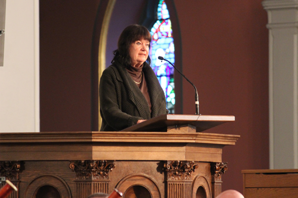 Las palabras de apertura de Helga Zepp-LaRouche subrayaron la urgencia de que la generación actual de líderes internalice la visión de futuro de Kennedy, y se conviertan en el vehículo de su inmortalidad, citando el reciente documento escrito por el Papa Francisco, en el cual él esgrime el mandamiento de "No matarás" como la norma necesaria de la justicia económica y política en todo el mundo. La señora Zepp-LaRouche dijo: "Es necesario que conmemoremos la presentación del Requiem de Mozart que fue cantado en memoria de John F. Kennedy, hace 50 años en esta catedral".