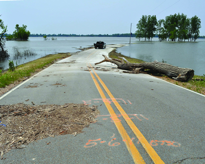 FEMA/Marilee Caliendo East of the levee, the road is washed out in Lake County, Tennessee. |