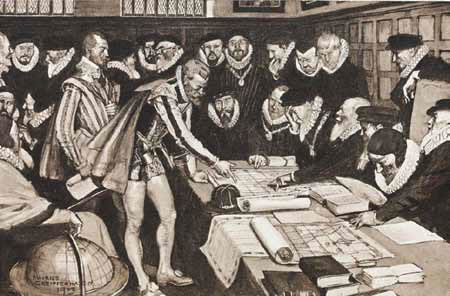 ![]() HBSC comes from a long historical line of banks making millions from the drug trade, including its predecessor, HongShang, established in 1865. Shown here is the founding of the granddaddy of them all, the British East India Company, in London in 1599. Illustration by Maurice Greifenhagen, 1908. |