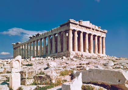 Civilization owes its very existence to the accomplishments of ancient Greece, wrote poet Percy Bysshe Shelley in 1821. Here, the Parthenon, which graces Athens’ Acropolis. |