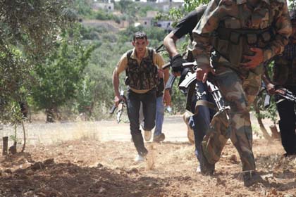 The Syrian “moderate opposition” photographed in October 2012. “We told our U.S. colleagues that the most important [thing] is, that up until now, all examples of U.S. instructors training militants, the so-called moderate opposition, on the territory of neighboring countries, resulted in the vast majority of those militants ending up on the extremists’ side.” —Russian Foreign Minister Sergey Lavrov, at a Qatar press conference August 3, 2015. |