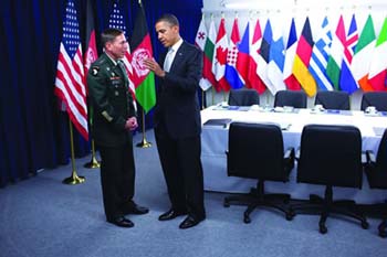 Barack Obama and his top U.S. and NATO commander in Afghanistan, Gen. David Petraeus—facilitators of the rise of ISIS—in November 2010. |