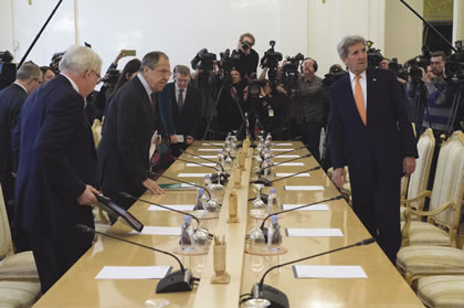 In a refreshing contrast to this war-mongering, U.S. Secretary of State John Kerry, in a joint press conference with Russian Foreign Minister Sergey Lavrov and German Foreign Minister Frank Walter Steinmeier, stressed Russia’s positive role in bringing about the possibility for a political solution in Syria. Lavrov added that, without Russia, neither the nuclear deal with Iran, nor the agreement for the destruction of the chemical weapons stocks of the Assad government, nor the ceasefire in Syria would have been possible.