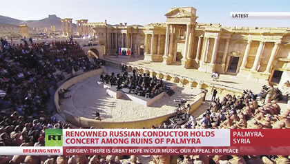 In contradistinction to the treasonous cowardice shown by the leaders and citizens of the United States over the last 15 years, Russian President Vladimir Putin on May 5 organized a Classical music concert in Palmyra, Syria, as a tribute to those who have died in the war against ISIS. |