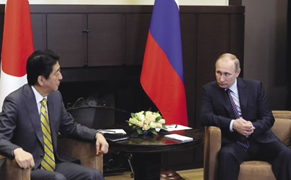 On May 6, Japanese Prime Minister Shinzo Abe held an extremely successful summit with Putin in Sochi on the Black Sea, despite intense pressure from the Obama White House to cancel the visit. Sources close to the negotiations have informed EIR that Abe and Putin agreed on a path towards solving the territorial dispute that has prevented the signing of a peace treaty to end World War II between Russia and Japan.