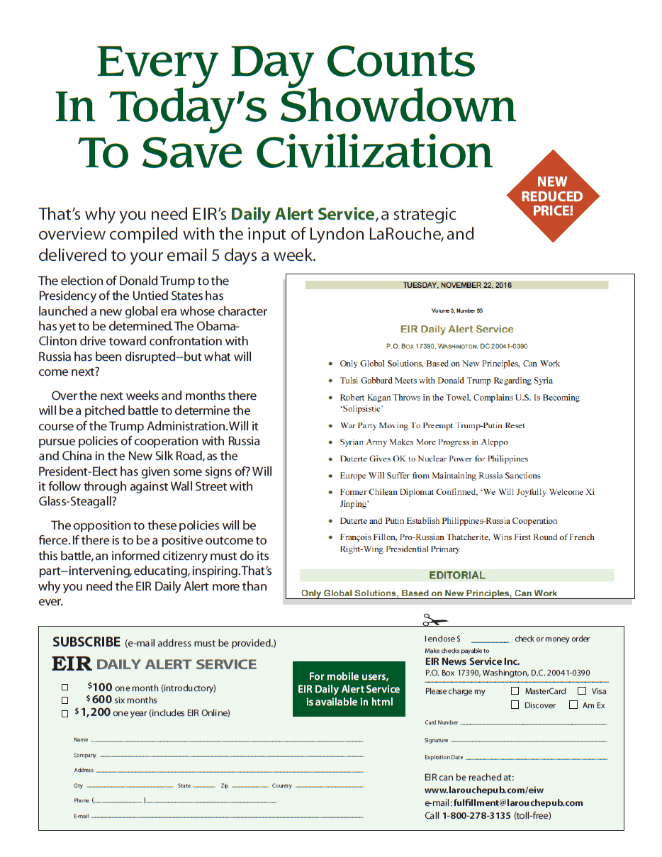 A PDF version of this dossier was published in the February 24, 2017 issue of Executive Intelligence Review and is re-published here with permission.