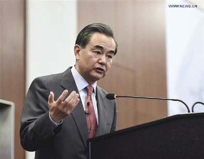 Chinese Foreign Minister Wang Yi speaking at the Center for Strategic and International Studies (CSIS) in Washington, D.C. on Feb. 25, 2016. |