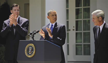 Former FBI director James Comey (left), and prosecutor Robert Mueller (right). |
